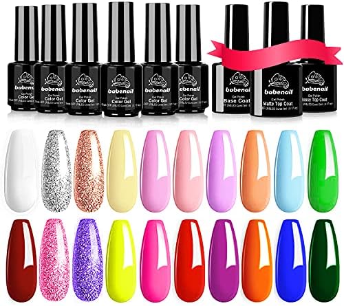 Babenail 20 Colors Gel Nail Polish Kit Soak Off Uv Led 21 Days Long Lasting Orange Pink Glitter Gel Polish 3 Base Top Coat Glossy Matte Top Coat And Base Coat