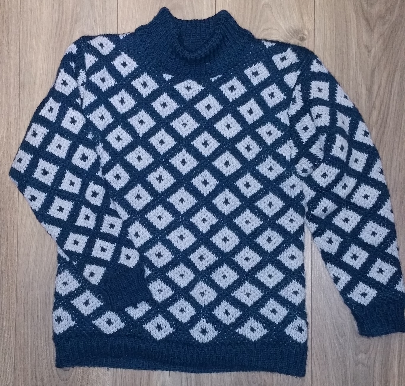 Pullover Karo In Fairisle Zweifarbig Gestrickt Gr 40